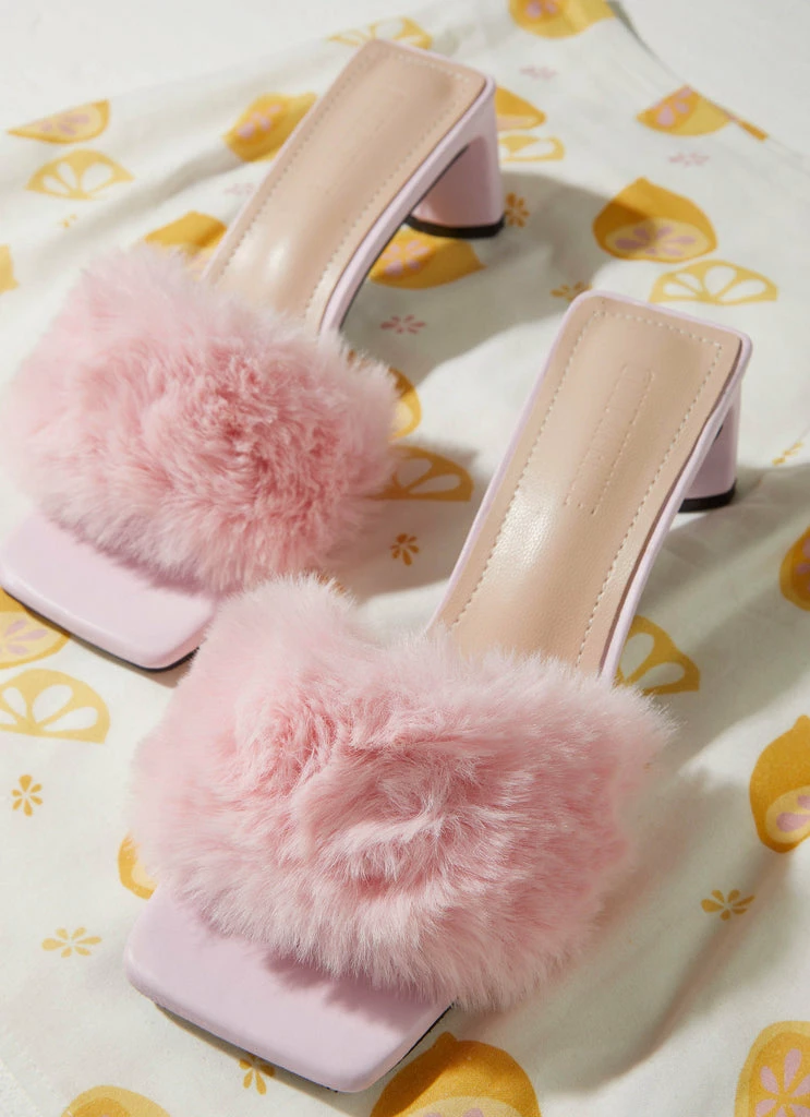 These cute lil peep toe heeled mules are perfect for dressing up any outfit. Featuring a block heel, fluffy peep toe design, they’re our new weekend go-to.