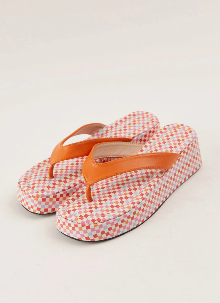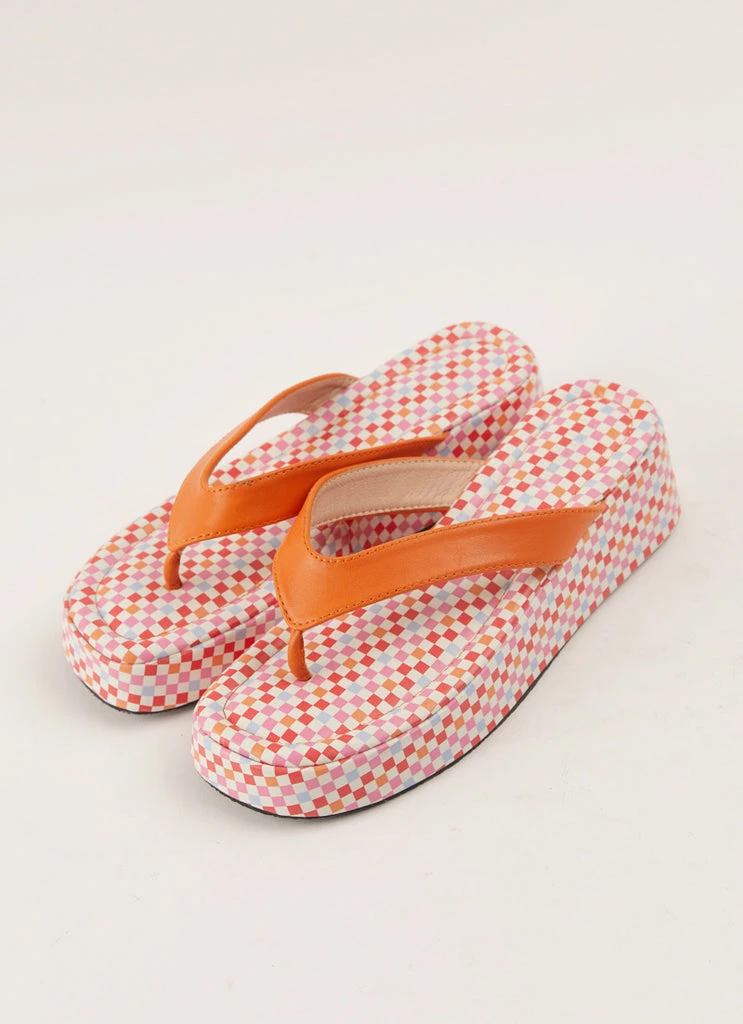 – Front toe strap with contrast sole
