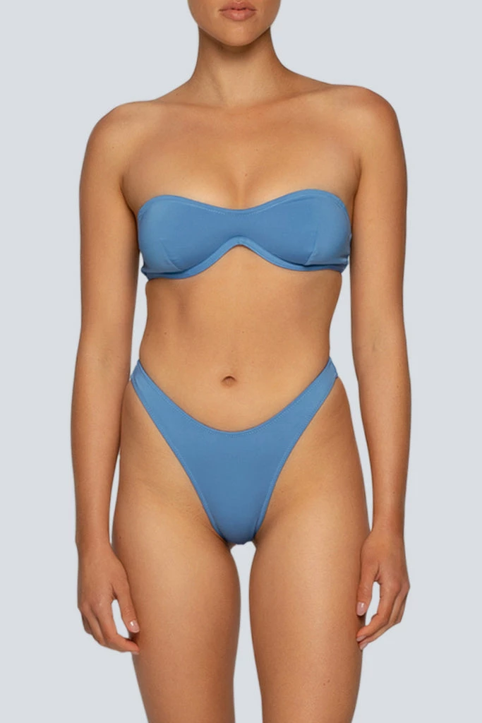 The Romeo to your Juliette, your ride or die. The Romeo bandeau bikini top is inspired by 80’s supermodels that sported big hair and big attitudes. Nothing was subtle, everything was high impact. We adore the essence of this perspective and channelled this into a modern update of a retro era. Structured sporty top that is strong in its delivery, paired with a simple but bold high waist bottom. Get your discman out babes where going poolside.