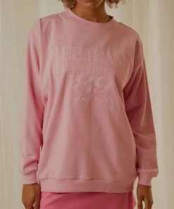 Designed to be oversized and slouchy, our Prism Pink sweater features a crew neckline, ribbed cuffs & hem, drop shoulders and large tonal embroidery reminiscent of 90’s inspired sports aesthetic. Crafted in 100% BCI cotton and super soft loopback fleece, this style will take you from the gym to casual weekend wear.