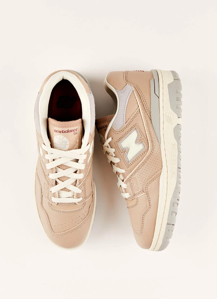 The 550 pays tribute to the 1989 original that defined a hoops generation. Originally worn by pro ballers in the ’80s and ’90s, the new 550 is simple, clean and true to its legacy. This New Balance 550 utilises the traditional leather, mesh, and suede construction while perforation appears on the lateral side.