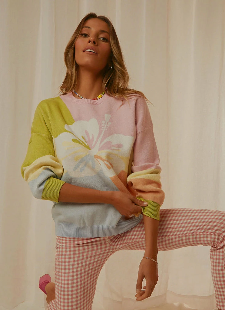 Cool girl vibes year round in the My Paradise Knit Jumper. Looks fab paired with printed pants, chunky sandals and vintage inspired accessories.