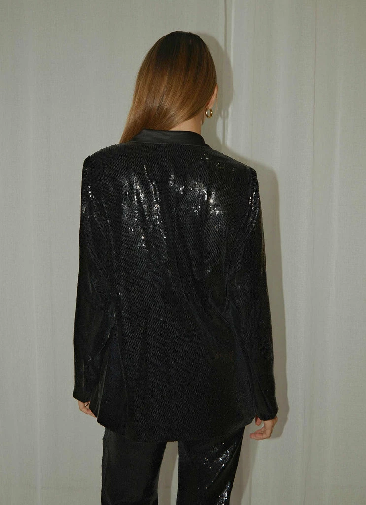 Shimmer and shine in the Prince Sequin Blazer. The perfect statement piece featuring a silky lapel, faux 2 pocket detailing and structured shoulders. Turn up the heat and pair it back with the Prince Sequin Pant.