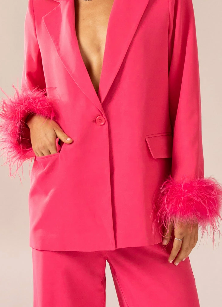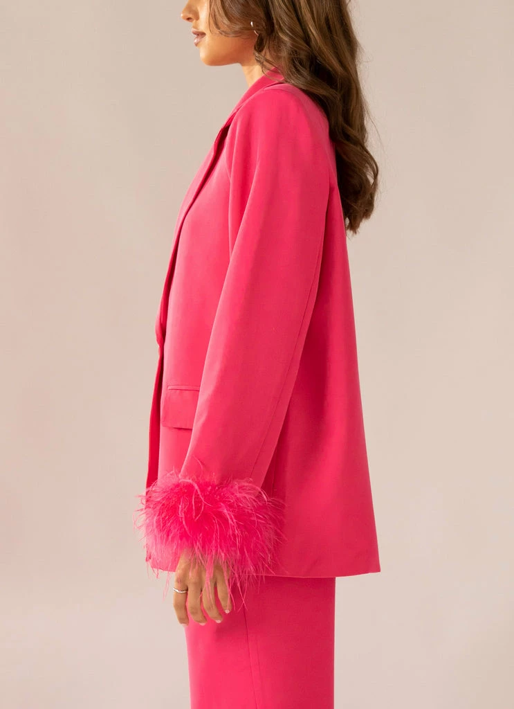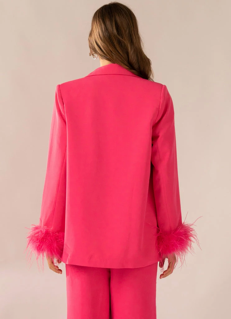 Shake, shake, shake it off baby! The Shake It Off Feather Blazer is what retro dreams are made of. An oversized fit featuring fur cuffs with 3 button closure at the front and pockets. From day to night, paired perfectly with casual denim or to finish an evening look.