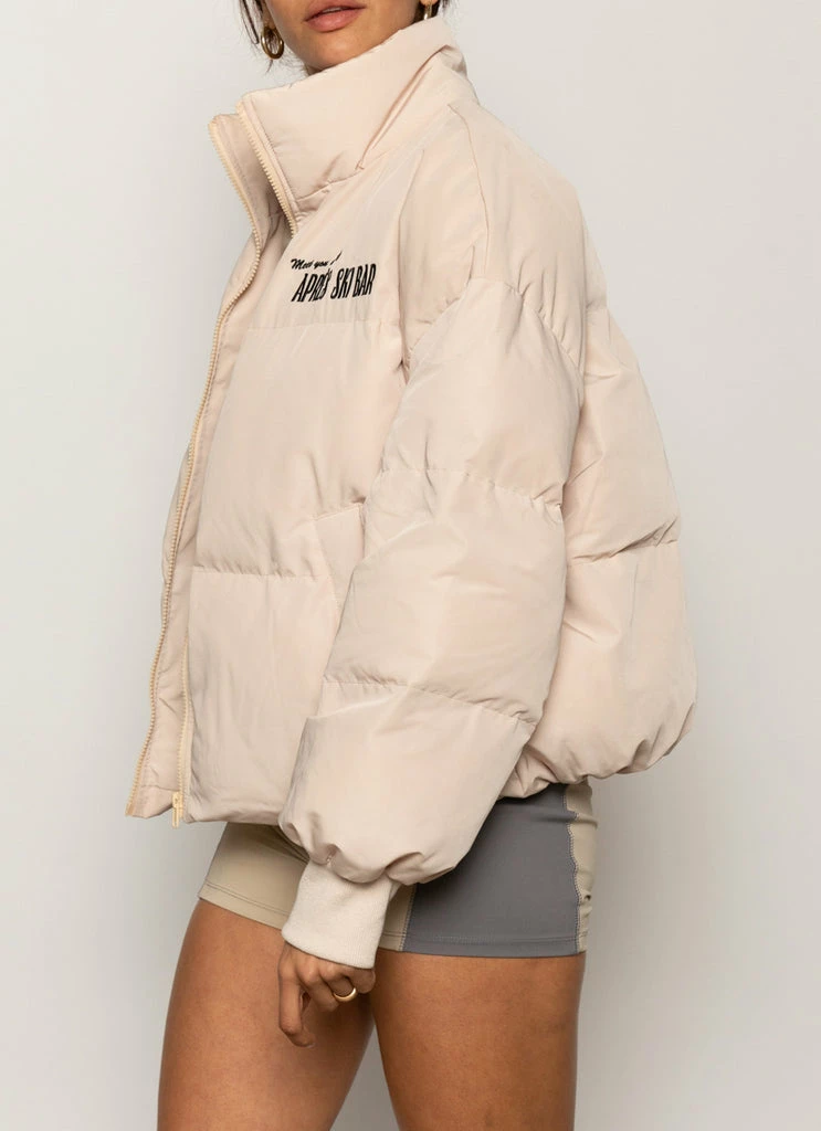 The winter warmer you’ve been waiting for! The Slopes Puffer Jacket is the ultimate athleisure look, collared with drop shoulders, fitted ribbed cuffs and 2 front pockets. Crafted in warm beige with contrasting black embroidery on the left breast.