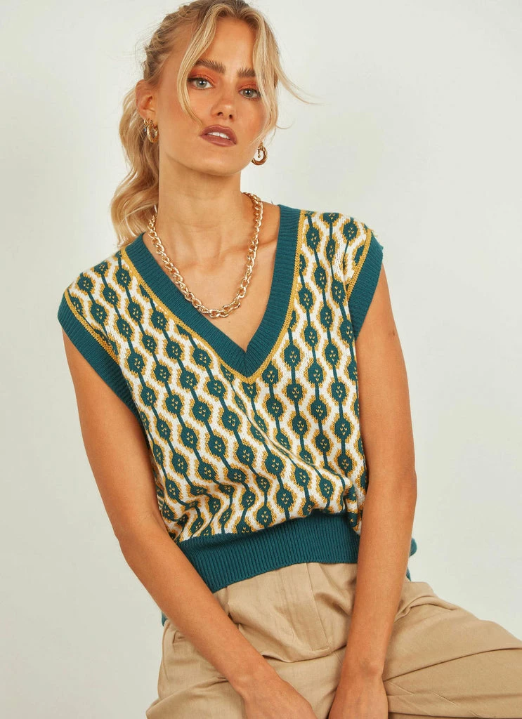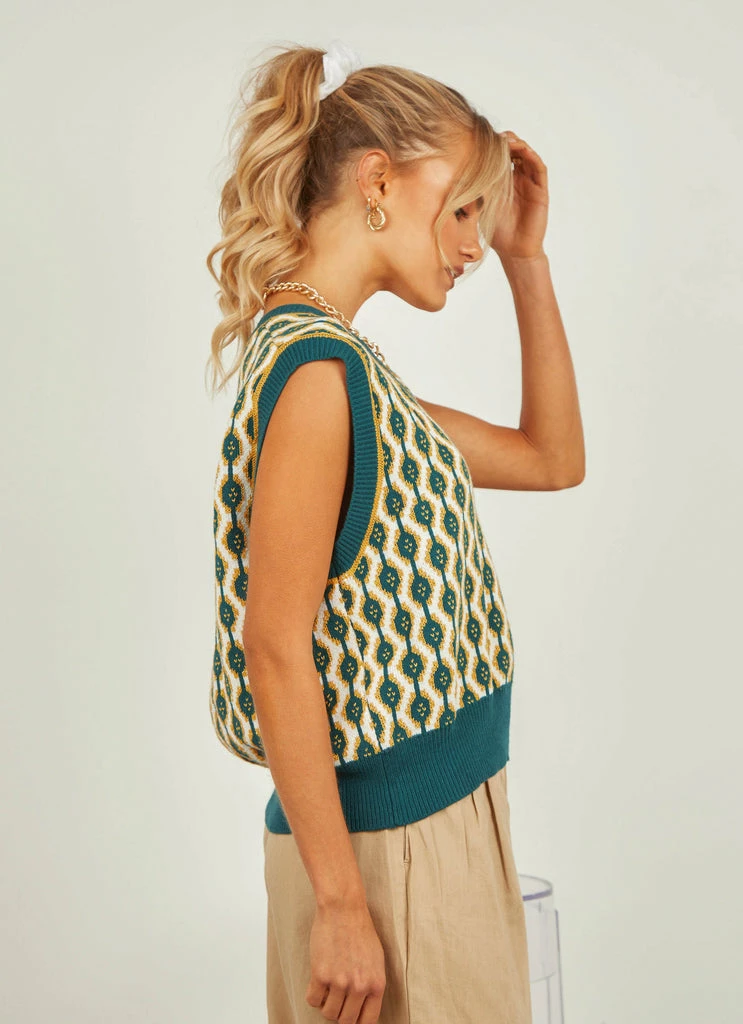 Make a colourful statement in the Schoolin’ Life Knit Vest. We love this worn over a button down shirt. Pair with a mini skirt and chunky sneakers for a fun take on a preppy look.