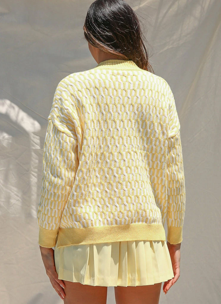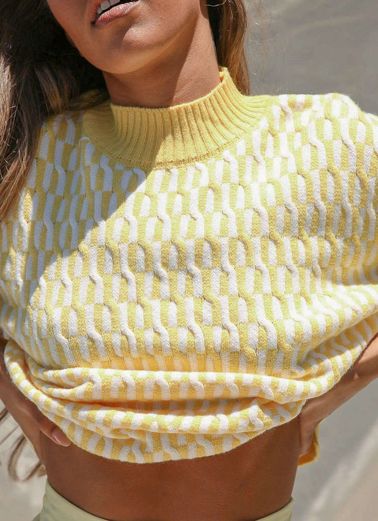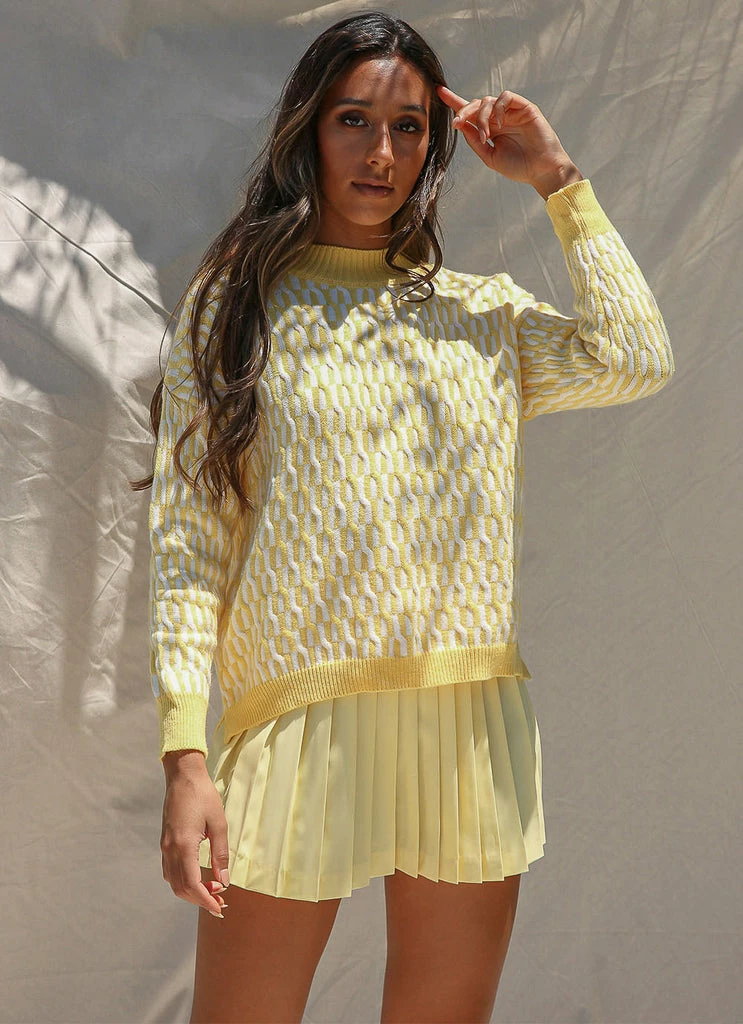 Cool girl vibes year round in the Summer Holidays Knit sweater. A nod to 90’s surf culture, this cute pastel knit will add a bit of fun to your wardrobe. Looks fab paired with denim shorts, chunky sandals and vintage inspired accessories.