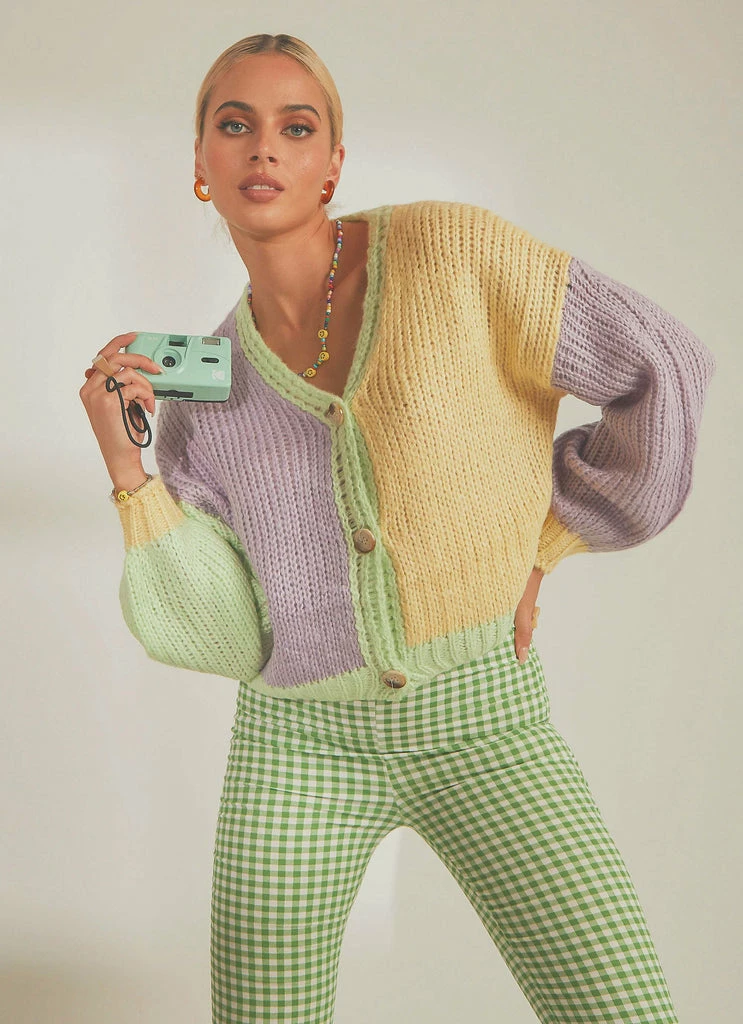 Say hello to your newest obsession, our “Write Your Name” Knit Cardigan. We love this paired with gingham trousers and cute mules.