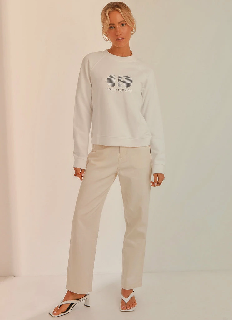 The 80s Sport Sweater by Rollas Jeans is the must-have sweater for this season. Features a high crew neckline and slimline sleeves. Detailed with The Rollas Jeans vintage inspired signature font.