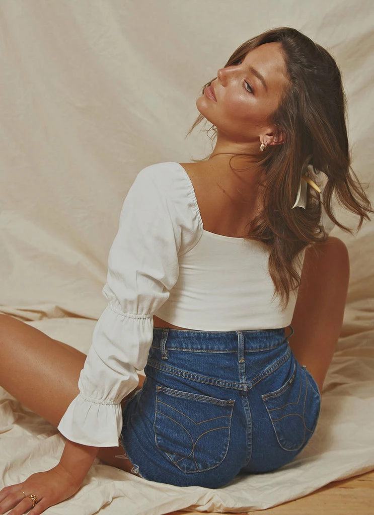 The Original Short is one of our best sellers as it’s a modest length with all your favourite Rollas details. Eco Natalie Blue is constructed with an ultra-flattering high-rise, our signature back pockets, and completed with a raw hem. Pair with our Tomboy tee for an easy street style.