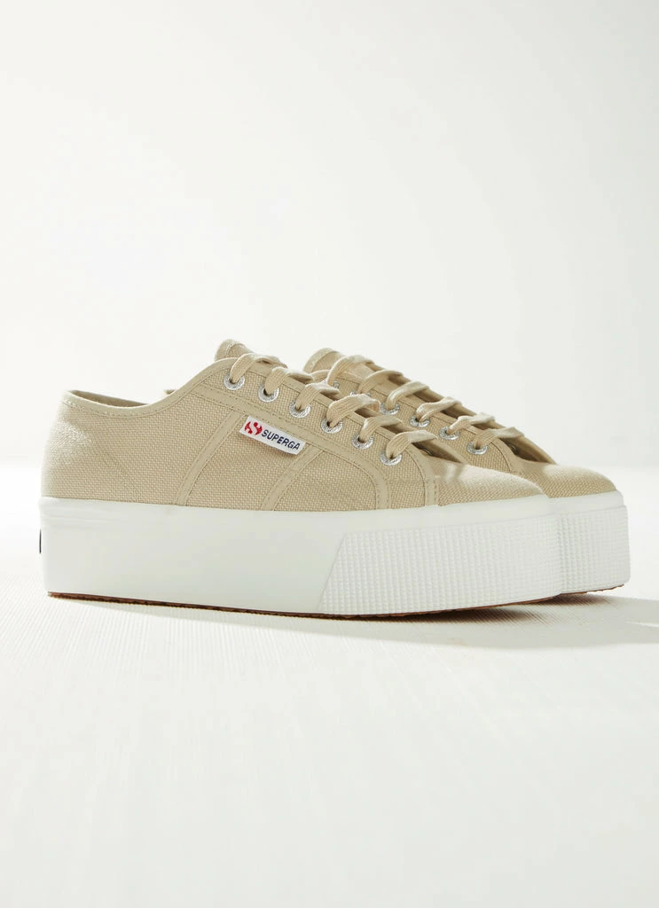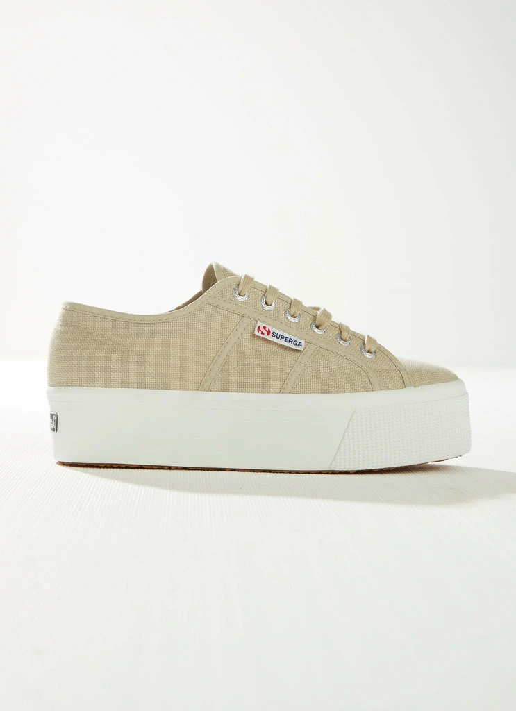 Our Classic Superga 2750 gets remastered! The 2790 flatform is a cross between our classic tennis shoe shape, and a platform shoe, featuring a chunky vulcanised rubber sole for extra height. Keep the comfort and take your outfit to new heights in our much-loved flatforms.